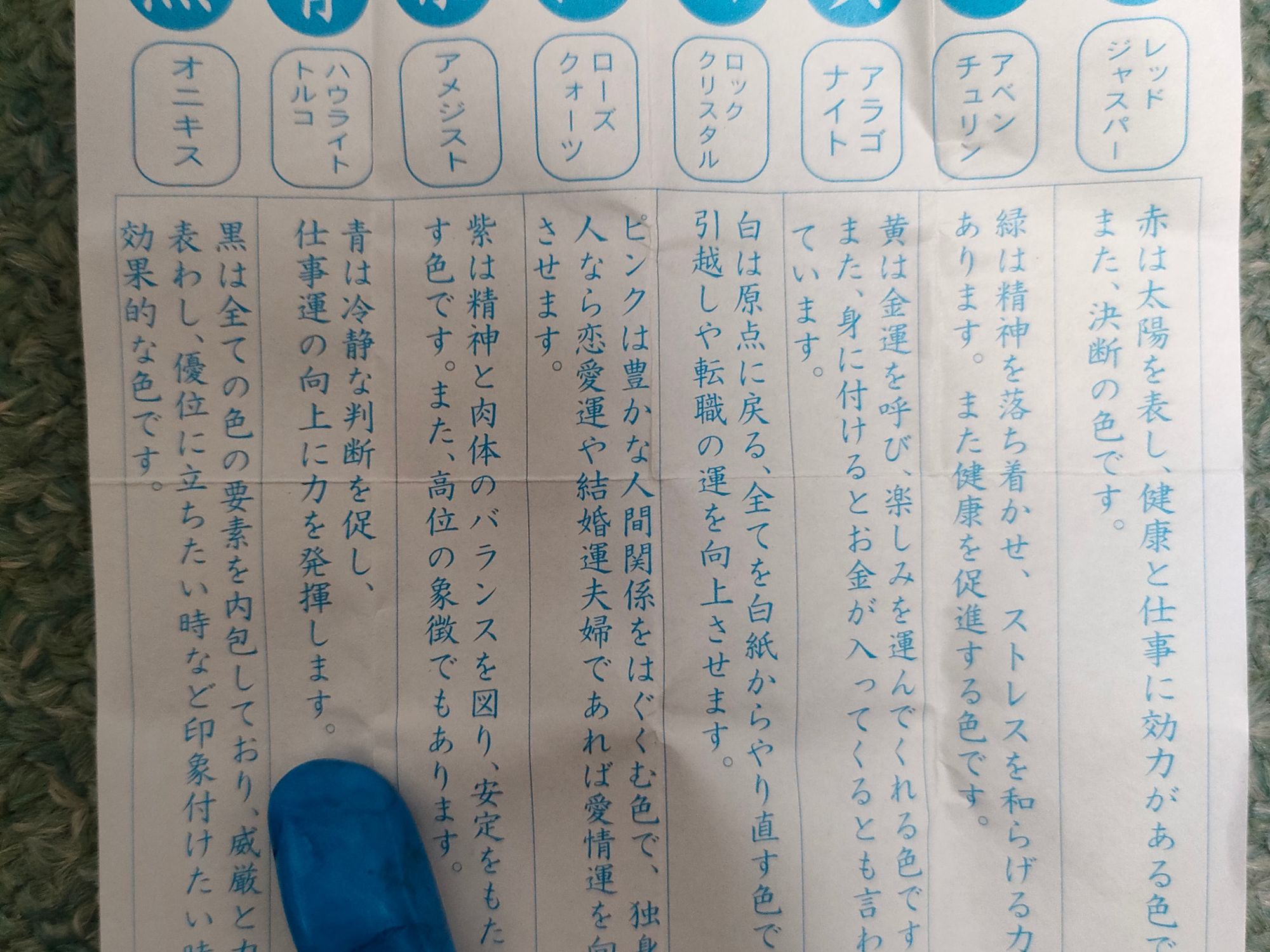 そそっかしくて、大体物事を悪い方向にとらえる気質がある自分には、良い石かもしれない。